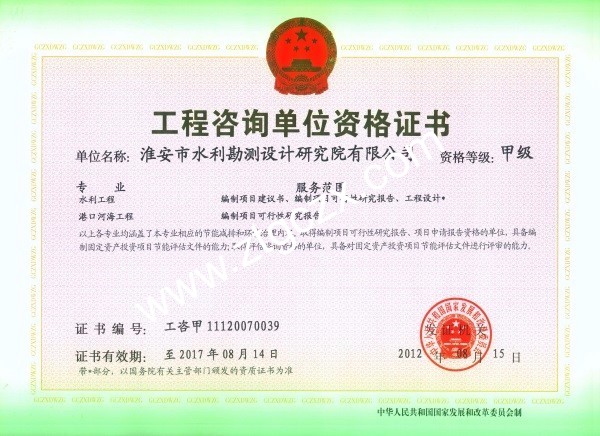 淮安院工程咨詢資質(zhì)甲級